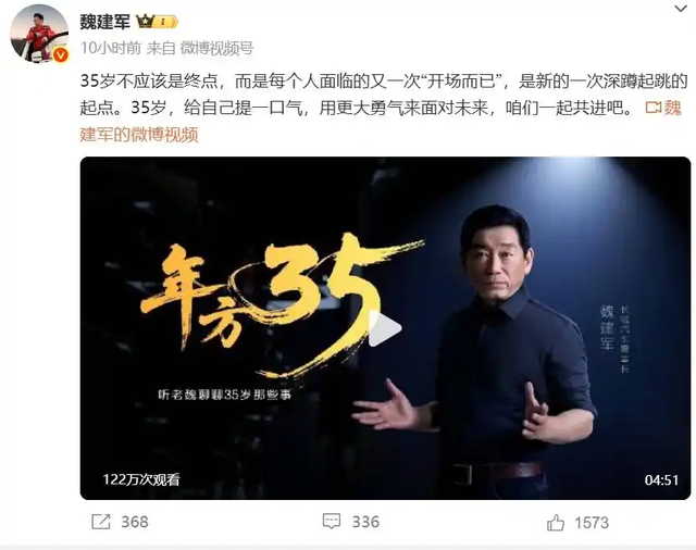 他说:35岁不应该是终点,而是每个人面临的又一次开场而已。是新的深蹲起跳的起点。35岁,给自己提一口气,用更大的勇气面对未来,咱们一起共进。